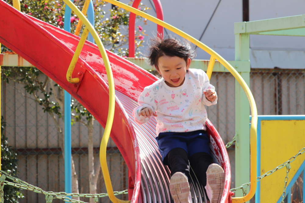 「猛スピードで滑るよ!いくよー!!」