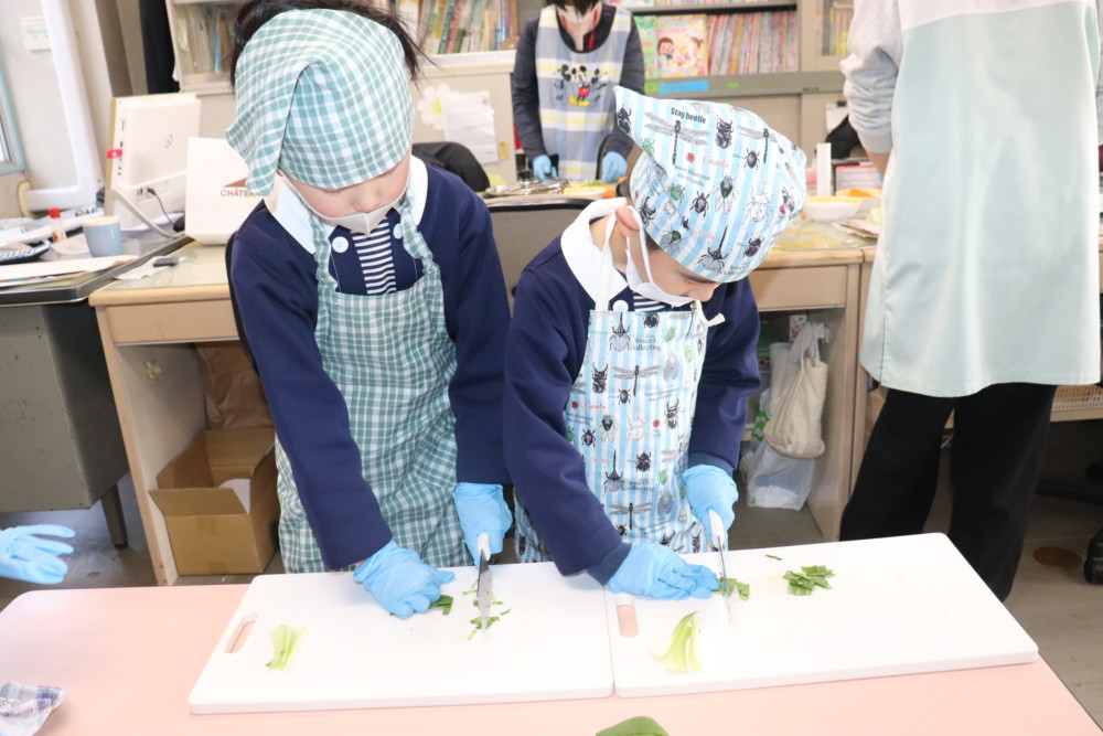 特にチンゲン菜はみんなが食べやすいようにと細かく切ることを意識して切ることができました!