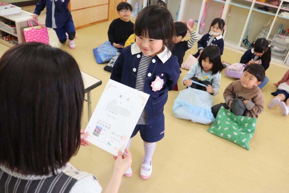 お部屋では担任の先生から賞状をもらいました!