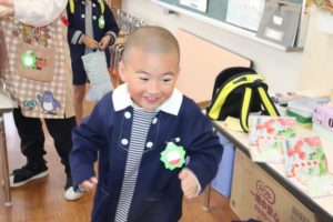 新しい名札を付けてもらい、とても嬉しそうなお友だち!!みんな似合ってるね♪