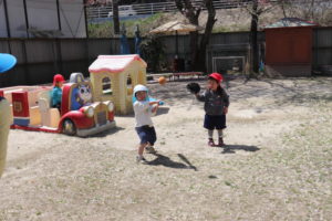 今日はとてもお天気がよく、戸外で元気いっぱい遊びました!(^^)!