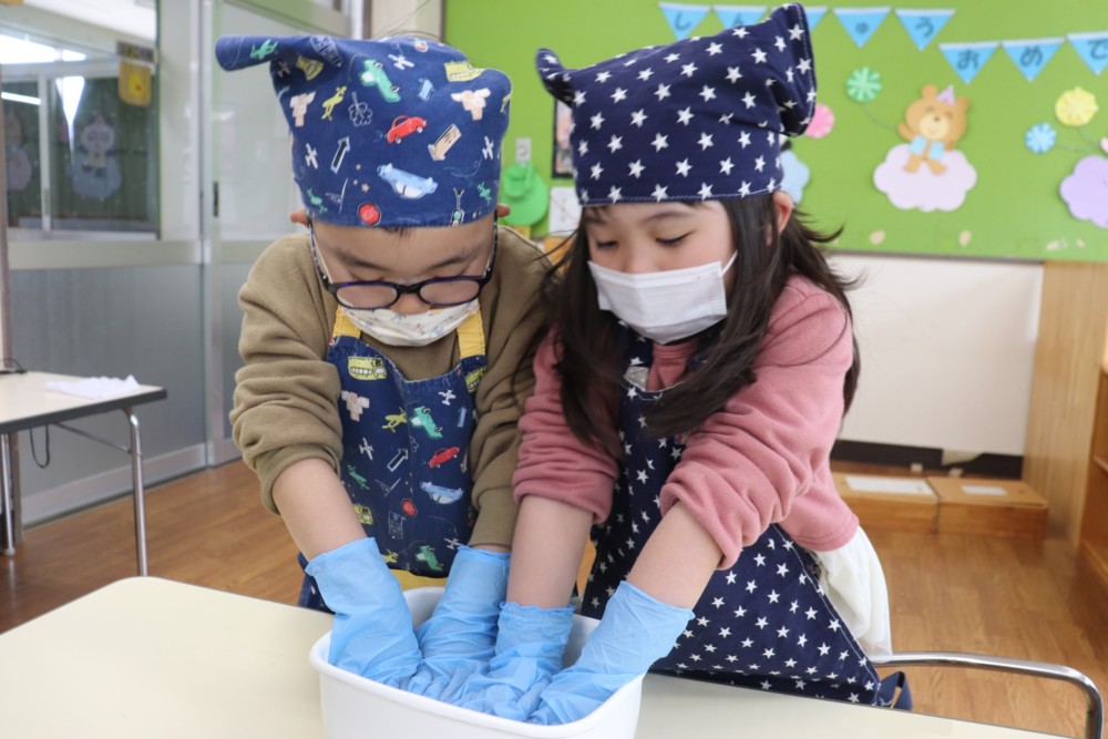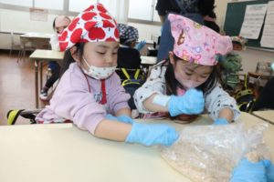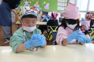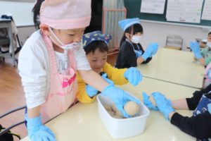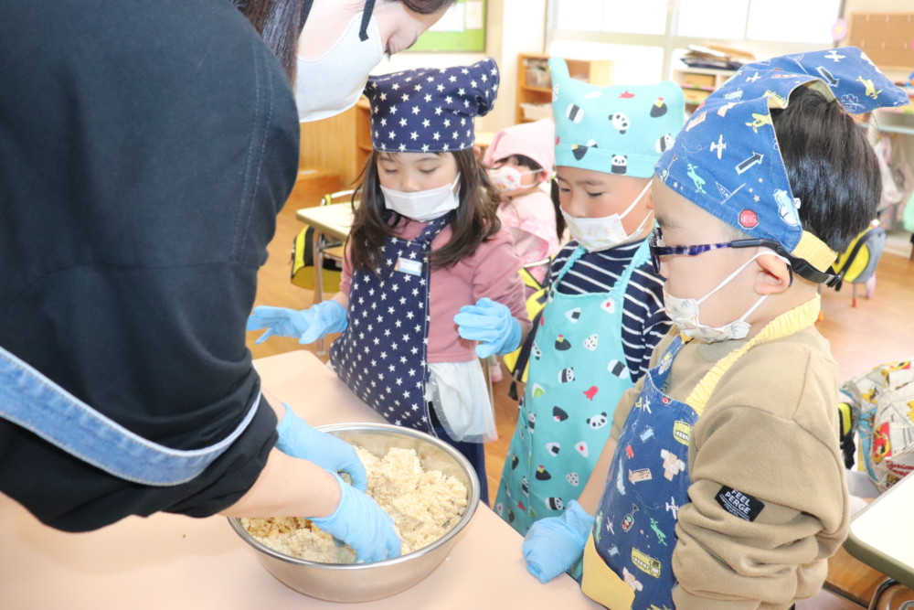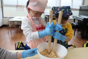登園日(2日目)~味噌づくり(年長組)~