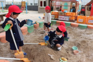 先週入園式を終え、今日から幼稚園のお友だちみんなそろっての園生活がスタートしました!