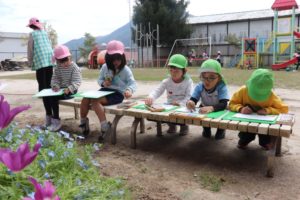 年長組のお友だちは、花壇のお花の観察画を描いていました(*^-^*)